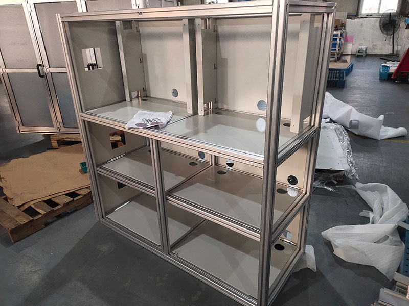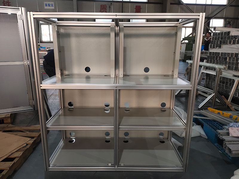 控制柜的主要功能是放置電氣設(shè)備,因此,需要選擇規(guī)格合適鋁型材進(jìn)行制造,例如4040型材和4080型材,以及規(guī)格較大的6060型材、8080型材、80120型材、9090型材、100100型材。型材的具體規(guī)格可根據(jù)不同的承重要求選擇。